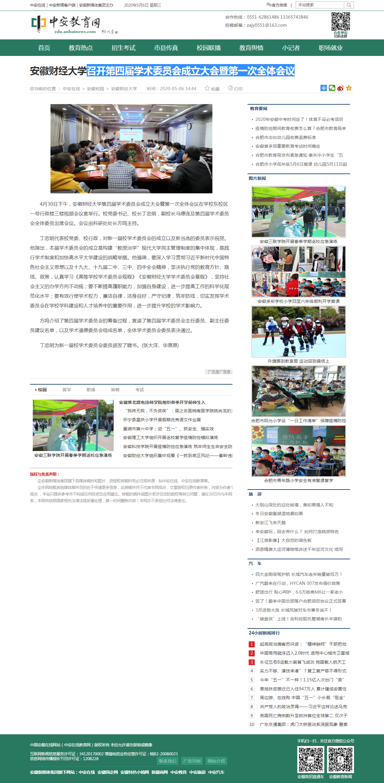5月6日,中安教育网报道了我校召开第四届学术委员会成立大会暨第一次全体会议,具体报道链接如下: