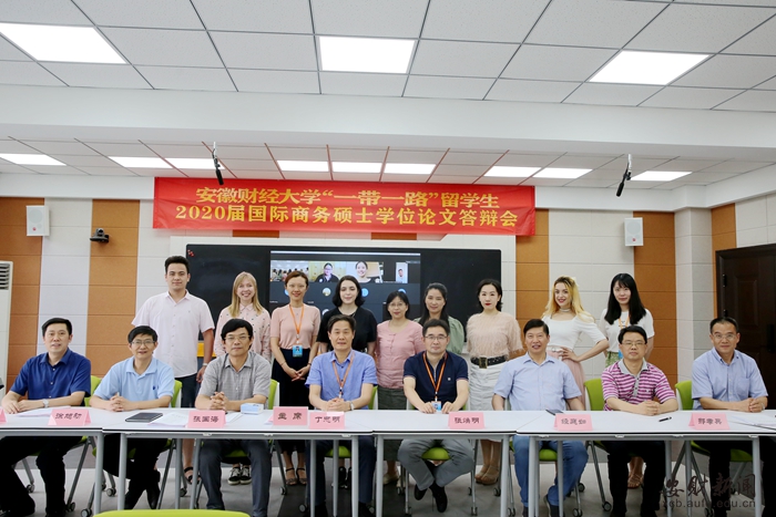 6月11日下午,安徽财经大学2020届“一带一路”国际商务硕士留学生学位论文答辩会在明德楼220教室举行。来自乌克兰、法国、泰国的留学生参加答辩。留学生教师代表、在校全体留学生、国际教育学院全体成员参加答辩会。答辩会由国际教育学院院长程昔武主持。