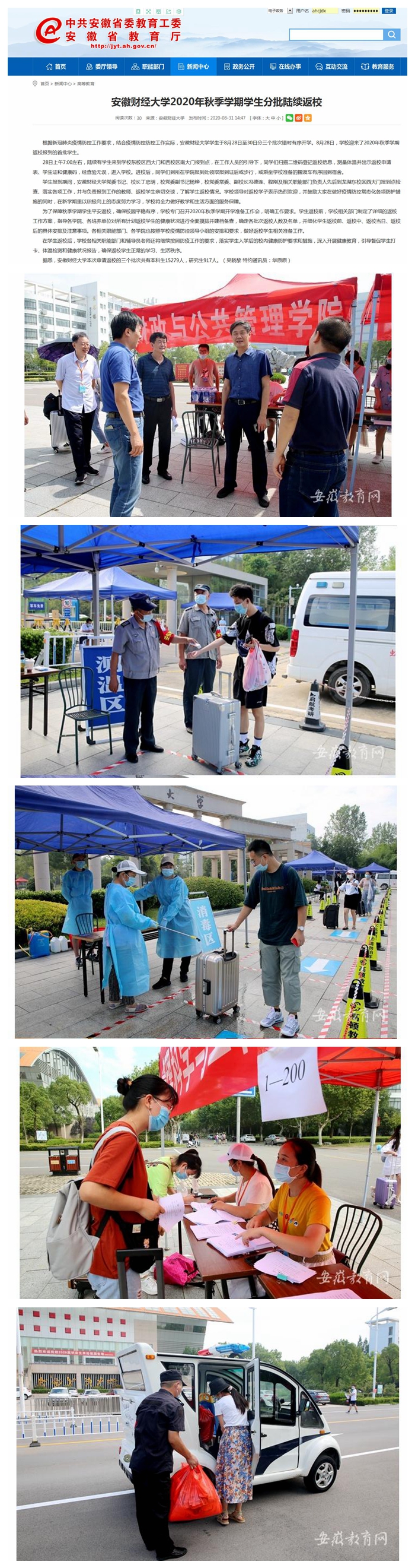 中安教育网报道链接:安徽财经大学2020年秋季学期学生分批陆续返校