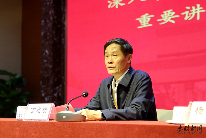 丁忠明在总结讲话中指出,习近平总书记在安徽考察期间的重要讲话指示,高瞻远瞩、总揽全局,为安徽高质量发展指明了方向。全校教职员工要深刻领会重要讲话精神的核心要义,切实用科学理论武装头脑。要把学习习近平总书记考察安徽重要讲话指示精神与学习习近平新时代中国特色社会主义思想结合起来,与学习《习近平谈治国理政》一二三卷结合起来,与学习习近平总书记关于教育的重要论述和全国全省教育大会精神结合起来,做到学深悟透、融会贯通、真信笃行;要聚焦学校中心工作,切实用实际行动推动事业高质量发展。要牢牢把握学校第六次党代会确立的发展目标,进一步明确办学理念和办学思路,坚持把科学发展作为办学兴校的第一要务,把改革创新作为办学兴校的第一动力,把人才资源作为办学兴校的第一资源,把党建和思想政治工作作为学校事业发展的根本保证,紧紧抓住地方特色高水平教学研究型大学这个建设目标不动摇、不懈怠,促进学校各项工作稳重有进、进中趋优;要科学制定“十四五”规划,切实用创新思维谋划美好愿景。要广泛征求各方意见,凝聚广大教职员工、校友代表、在校学生、用人单位的智慧和建议,把社会期盼、专家意见、群众智慧、基层经验充分吸收到规划当中来。各单位各部门要进一步提高政治站位、加强调研、统一思想、明确思路,为规划编制工作出计献策,齐心协力把“十四五”规划编制好,为学校未来五年的发展谋篇布局、贡献智慧;要压紧压实主体责任,切实用优良作风全面落实立德树人根本任务。要持续深入推进全面从严治党,综合运用巡视成果,把巡视整改融入工作的全过程中去。学校党委及各级党组织要建立健全作风建设责任体系,层层传导压力,不断加强组织领导和督促指导,统筹推进常态化疫情防控和教育教学改革等各方面工作,健全立德树人体制机制,全面落实立德树人根本任务,把立德树人融入到教育教学的全过程各环节中去,全面提升育人能力和育人质量。