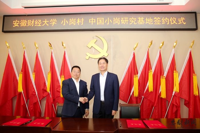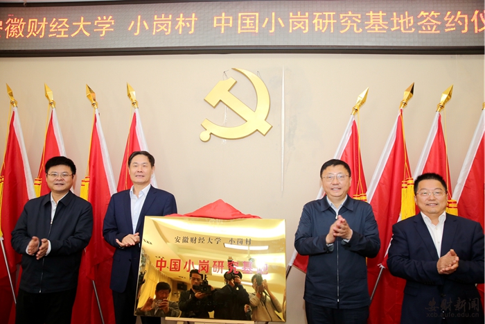 10月20日上午,“安徽财经大学 小岗村 中国小岗研究基地”签约挂牌仪式暨小岗发展与美好乡村建设研讨会在凤阳县小岗村举办。校党委书记、校长丁忠明,中国农村杂志社副社长、副总编辑夏树,校党委常委、副校长冯德连,凤阳县县委书记徐广友,安徽省农业农村厅农村合作经济指导处副处长朱振国,凤阳县小岗村第一书记李锦柱出席仪式。学校相关职能部门负责人、安徽财经大学中国小岗研究院核心团队成员参加仪式。