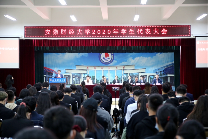 校团委副书记杜斌致开幕词。校学生会执行主席吴舒磊作题为《勇于自我革命,服务同学成长,在砥砺奋进中凝聚青春力量》工作报告。会上,代表们审议通过了工作报告和《安徽财经大学学生会章程(修正案)》,选举产生了新一届学生委员会委员和学生会主席团成员。
