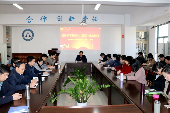 11月11日下午,校党委书记、校长丁忠明到工商管理学院调研并在工管学院教工第二党支部宣讲党的十九届五中全会精神。工管学院党政领导班子成员,学院教工第二党支部全体党员参加调研并聆听报告。工管学院教工第二党支部书记梁中主持会议。