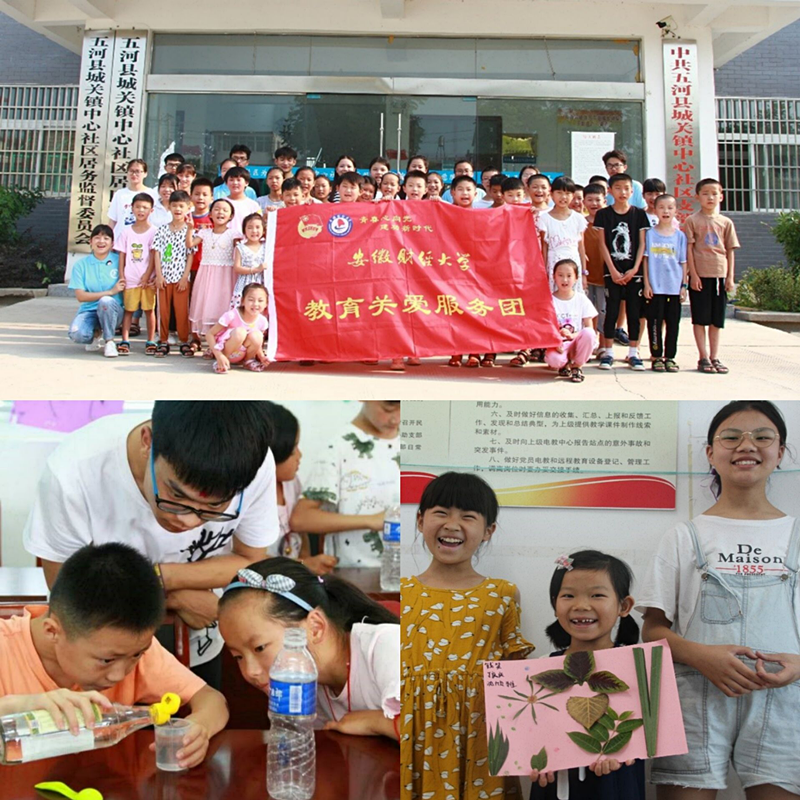 此外,学校在实践育人过程中还特别关注大学生社会责任感教育,学校连续4年组建了“守护小候鸟”团队,在蚌埠市五河县城关镇中心村开展暑期支教活动。该团队通过调研留守儿童的家庭环境和心理问题,为孩子们准备了各种特色班的教学,用爱守护孩子们的梦想与希望,用爱温暖孩子们的成长之路,为留守儿童撑起了一片爱的天空。