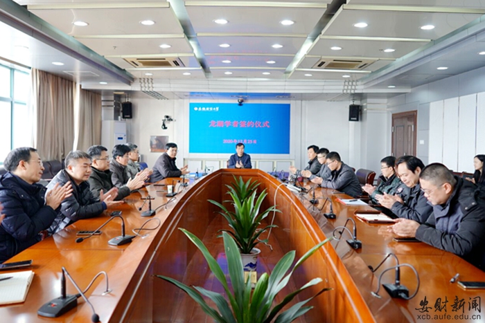 经济学院副院长李强教授和国际经济贸易学院院长邢孝兵教授分别代表新聘“龙湖学者”和设岗学院发言。张国海分别与新聘“龙湖学者”签订协议。