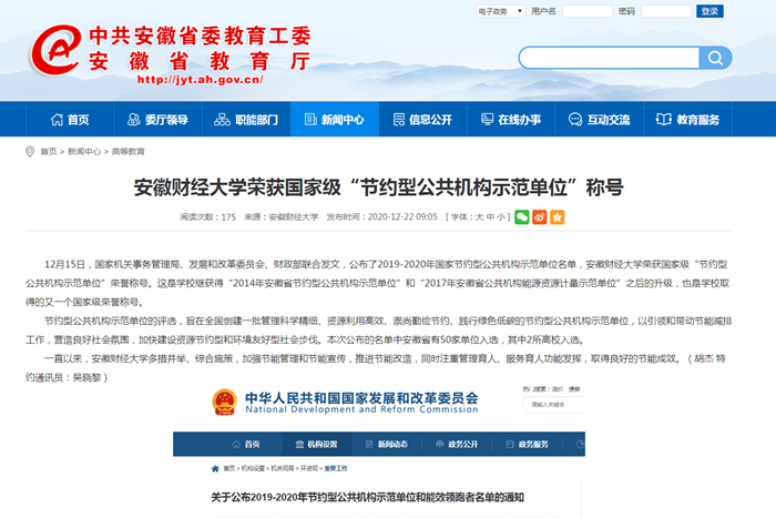 12月22日,安徽教育网报道我校荣获国家级“节约型公共机构示范单位”称号