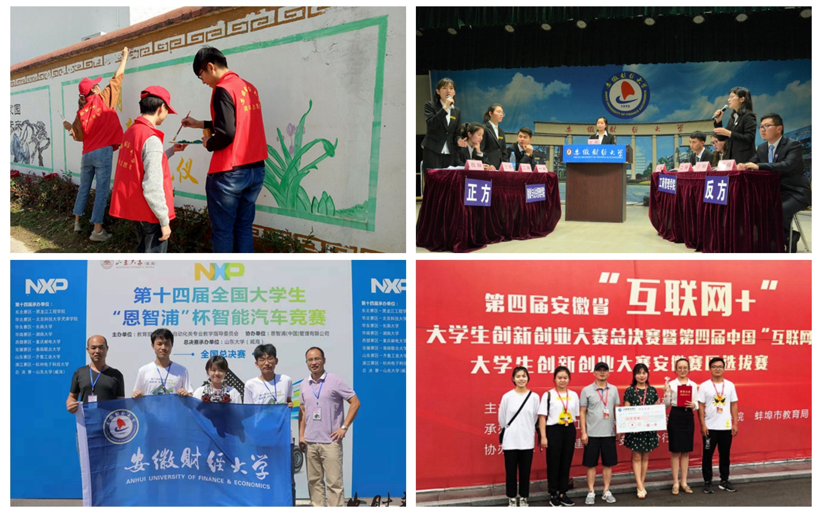“十三五”期间,学校积极推进实践教学内容和方法的改革,强化实践教学在人才培养中的地位和作用,不断完善多学科、多专业交叉融合的“五五四”实践教学体系。五年来,学校新建实验室18间,新增实验设备总值3465.7万元;新增教育部产学合作协同育人项目37个、省级重点实验室2个、省级示范实验实训中心6个、省级校企合作实践教育基地6个、省级虚拟仿真实验教学项目8个,省级大学生创客实验室建设计划项目7个。出台《安徽财经大学大学生学科竞赛管理办法》《安徽财经大学学科竞赛类学分认定指南》《安徽财经大学创新创业类学分认定指南》等系列文件,积极开展大学生学科竞赛与创新创业训练,学生的实践能力和创新创业能力得到明显提高。五年来,学校在“互联网+”大学生创新创业大赛、“挑战杯”全国大学生课外学术科技作品竞赛、全国大学生数学建模竞赛等创新创业竞赛中,共获国际奖182项、国家级奖593项、省级奖3814项,获奖学生12000余人次;国家级、省级大学生创新创业训练计划数连续五年在全国地方高校中位列第一,立项总数4023项;在2015至2019年全国普通高校竞赛评估中,学校位列全国人文社科类高校第5,获奖总数继续位列全国财经类高校第1。