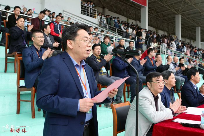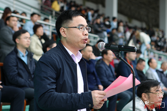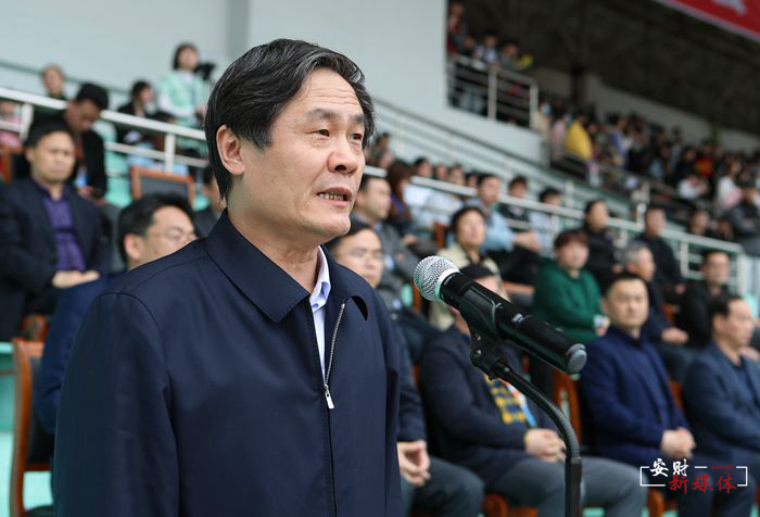 朱红军在致辞中表示,在学校教育和大学生活中,体育工作一直以来都是其非常重要的组成部分,“发展体育运动,增强师生体质”是学校体育工作的根本任务。我校始终坚持“立德树人”的根本任务和“健康第一”的教育理念,关注学生身心健康,促进学生全面发展,不断推动学校体育事业开创新局面。虽受疫情的影响,但安财人参与体育锻炼、强健体魄的热情和行动却从未停止,我校举办“健康安财”线上运动会、参加安徽省体育赛事、开展体育俱乐部建设等一系列活动,努力为全校师生营造一个丰富多彩、积极向上的校园体育氛围。朱红军强调,身体健康是构成人才质量的基本要素,在学校教育发展的新阶段中,我们必须加倍重视体育工作。运动会是推动学校体育工作的重要抓手,也是广大师生提高身体素质和意志品质的有效途径。他希望:运动员们能够带着中国女足的体育精神,赛出成绩、赛出风格;裁判员能忠于职守,严守规程,科学评判;各位师生能团结友爱,齐心协力,文明有序,在运动场上充分展现安财师生积极向上的精神风貌。
