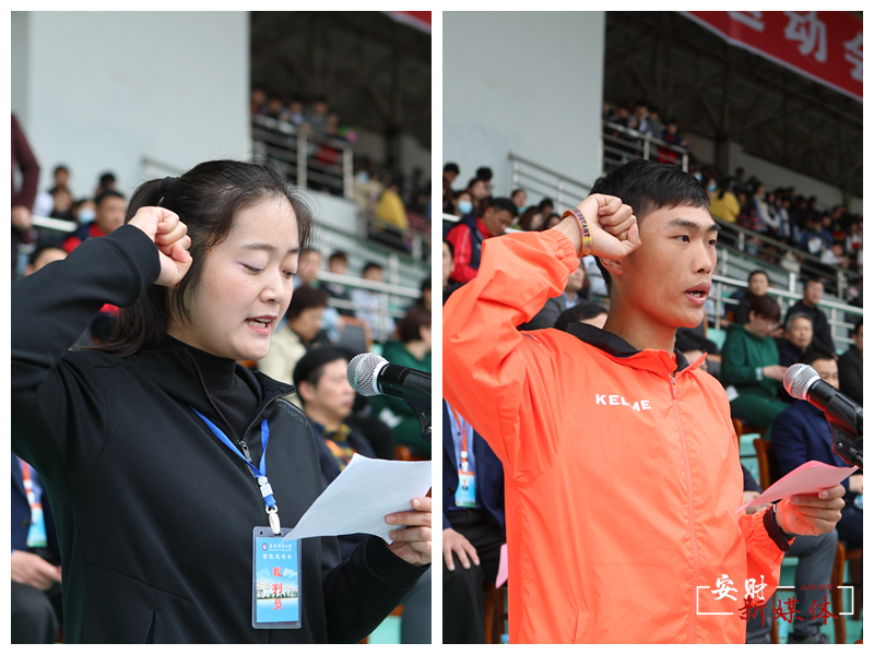 体育教学部晋婵娟、统计与应用数学学院王祥分别代表裁判员和运动员宣誓。