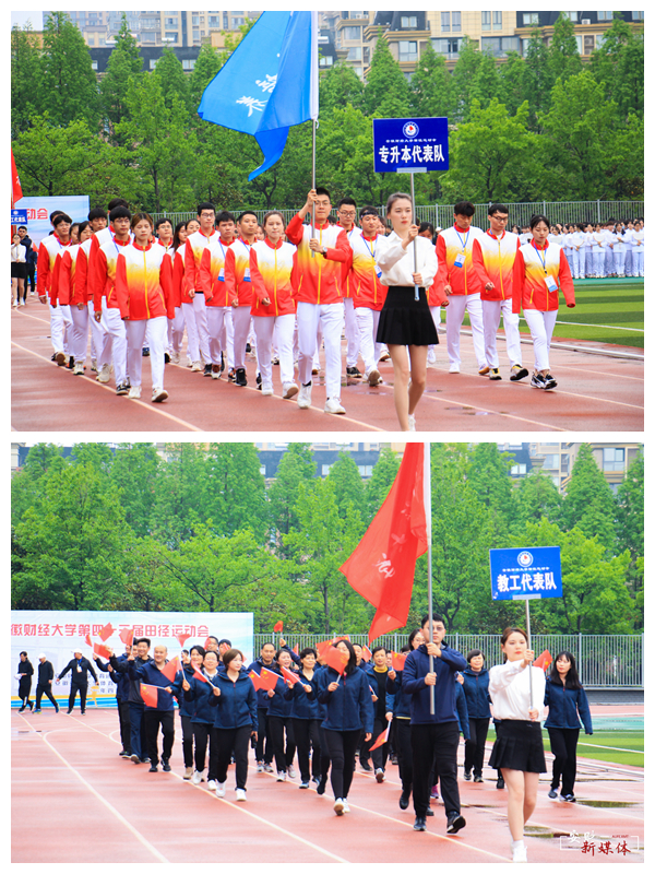开幕式上,国旗护卫队护着国旗、校旗,迈着矫健的步伐,庄严入场。一面面旗帜迎风招展,各学院代表队、教职工代表队、校联合培养专升本代表队依次步入操场,他们昂首挺胸、步伐稳健,充满自信与活力,充分展示了财大人奋发向上的精神风貌。