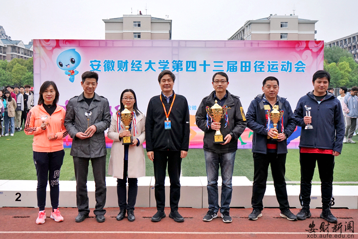 本届田径运动会总裁判长秦为锋宣读比赛成绩。会计学院获得学生组团体总分冠军,金融学院和工商管理学院分别获得亚军和季军,文学院、管理科学与工程学院、统计与应用数学学院分别获得了学生组团体总分四至六名;男子学生组团体前六名的单位依次为金融学院、工商管理学院、管理科学与工程学院、会计学院、统计与应用数学学院、经济学院;女子学生组团体前六名的单位依次为会计学院、文学院、金融学院、工商管理学院、统计与应用数学学院、管理科学与工程学院;教职工团体总分前六名依次为后勤管理服务中心分会、管理科学与工程学院分会、统计与应用数学学院分会、机关三分会、工商管理学院分会、国际经济贸易学院分会;获得本届校运会体育道德风尚奖的学院为经济学院、金融学院、国际经济贸易学院、工商管理学院、管理科学与工程学院、会计学院、财政与公共管理学院、法学院、统计与应用数学学院、艺术学院、文学院、国际教育学院、专升本代表队。