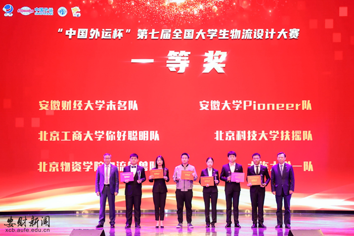 2021年4月22至25日,“中国外运杯”第七届全国大学生物流设计大赛决赛在北京物资学院举行,本届大赛由中国物流与采购联合会主办,中国外运股份有限公司赞助并提供案例支持。经过两天激烈的角逐,大赛决出一、二、三等奖。由我校工商管理学院武佩剑和余帆老师指导的安徽财经大学未名队(队员:陈雨露、李哲来、杨正源、张梦龙、乔钊钊)荣获一等奖,这是我校学子在该项赛事取得的最好成绩。