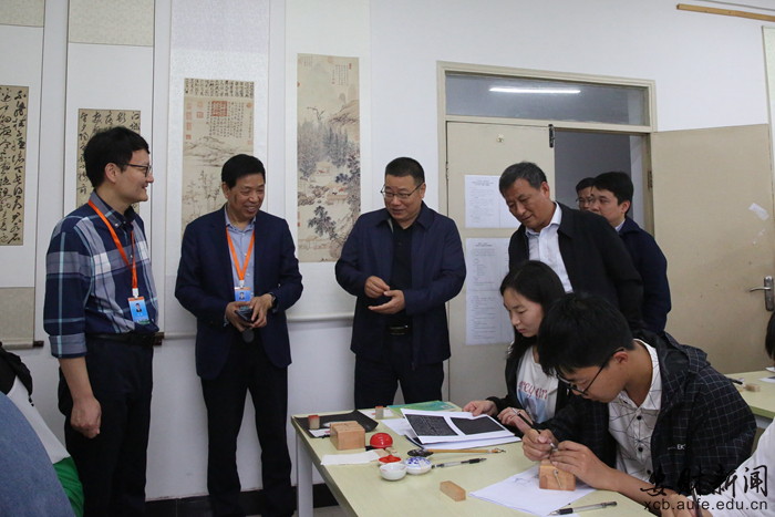 指导组一行先后来到艺术学院篆刻课堂、马克思主义学院理论热点面对面读书会、中国合作经济博物馆进行观摩指导,并与现场师生进行亲切交流。指导组认为,学校充分利用校内红色教育资源,举办读书会等活动,把读经典、谈体会、解疑惑、受教育融为一体,通过专业课堂,把党史教育融入课堂教学,把红色文化与传统文化有机结合,形式新颖、润物无声,党史学习取得了扎扎实实的成效。
