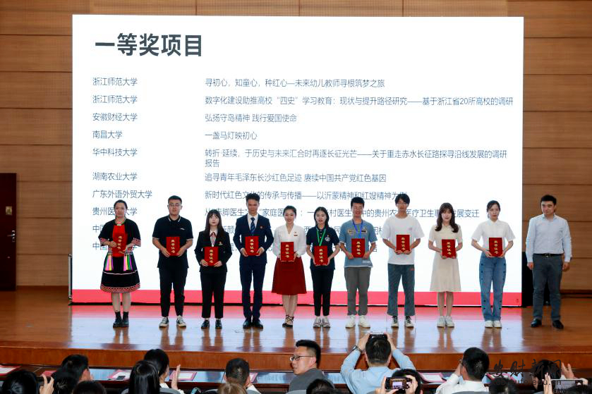 第十七届“挑战杯”全国大学生课外学术科技作品竞赛红色专项活动开展以来,全校上下高度重视,把参与红色专项赛作为庆祝建党100周年和党史学习教育的重要组成部分,积极组建了多支红色专项实践团队,通过重走红色足迹、追溯红色记忆、访谈红色人物、挖掘红色故事、体悟红色文化,感受党的红色精神伟力。马克思主义学院更是发挥学科优势,在校赛优秀项目的选拔培育方面做了大量认真细致的工作。经过激烈角逐,马克思主义学院赵斯建同学负责的团队作品《弘扬守岛精神,践行爱国使命》(钱和辉、万尧绪、李琼指导)获得全国一等奖,金融学院王淑琴同学负责的团队作品《新媒体时代下“红色文化”的创新性传承与发展》(郑亚琴、李楠指导)、会计学院林梦春同学负责的团队作品《脱贫攻坚视域下红色文化传承路径研究—以大别山革命老区为例》(鲍群、雷乐街、万尧绪指导)获得全国二等奖,经济学院刘春路同学负责的团队作品《皖水红旗曲·徽土黄梅音——红色黄梅戏传承与发展的研究》(查华超、汤新云指导)和会计学院杜宜萱同学负责的团队作品《牢记初心使命,传承红色基因——长征精神当代价值研究》(刘博、周宁指导)、法学院黄静蕾同学负责的团队作品《热雪壮山河,枫雨慰忠魂》(万尧绪、朱文瑞、于楚洪指导)获得全国三等奖。