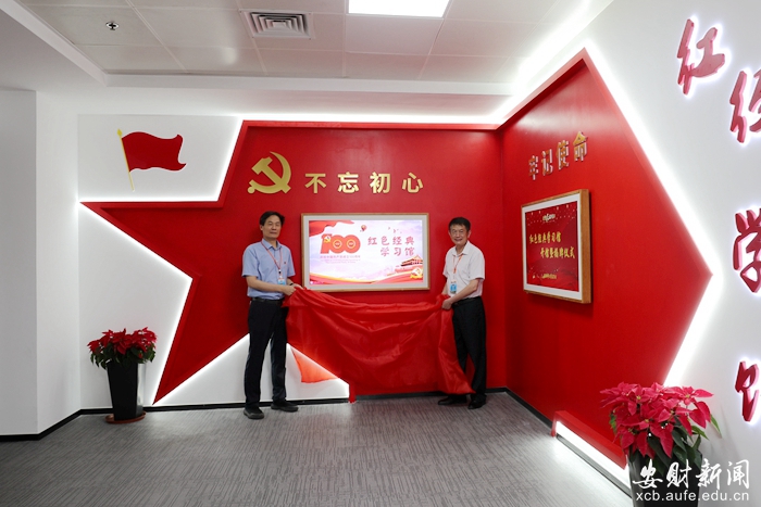 学习研讨前,校党委书记、校长丁忠明,党委副书记杨烨共同为红色经典学习馆揭牌。红色经典学习馆是图书与信息中心为我校师生打造的,以“重温红色经典、弘扬红色精神”为主题,集红色经典书籍阅览、理论专家讲红色文化、红色影片观看展演等于一体的党史学习教育基地。除纸质图书外,红色经典学习馆还设有画屏、声像软件和图书音像资料等载体,结合“中国共产党建党100周年”和“不忘初心、牢记使命”两大专题,为全校师生提供更多更新的阅读学习资料。