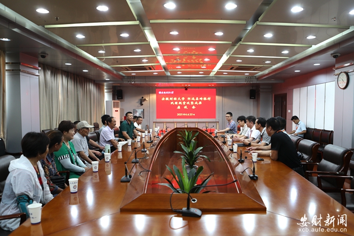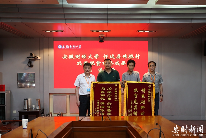 6月25日上午,怀远县砖桥村14位村民代表自发前往我校,向我校和我校后勤管理服务中心副主任、原怀远县万福镇砖桥村第一书记、扶贫工作队队长孙守春赠送锦旗,对学校和驻村扶贫干部多年来给予砖桥村脱贫攻坚工作的大力支持与帮助表达谢意。校党委副书记杨烨和相关职能部门负责人出席活动。