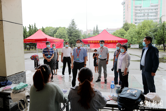 按照分批错峰错时返校的要求,8月27日是我校秋季学期开学返校的第一天,为迎接学生安全顺利返校,进一步做好校园疫情防控工作,校党委书记、校长丁忠明,校党委常委、副校长程刚带队深入龙湖东、西校区学生返校现场,检查指导学校疫情防控措施落实情况,看望返校归来的学生,并慰问现场工作人员。学校相关职能部门负责人陪同检查。