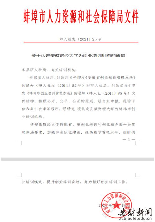 日前,在蚌埠市人力资源和社会保障局组织的创业培训机构认定评审中,我校顺利通过考核评审,被认定为“蚌埠市创业培训机构”。
