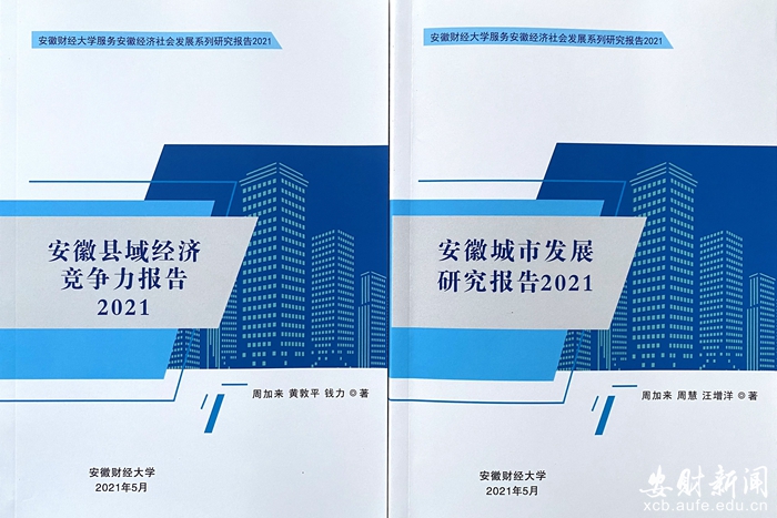 多年来,学校一直以服务地方经济社会发展为己任,紧密结合安徽经济社会发展实际,充分发挥财经类高校在服务地方经济社会发展中的重要作用,全力打造服务地方经济发展新模式。自2004年以来,学校已连续17年对外发布《安徽县域经济竞争力报告》,得到社会广泛认可。《安徽县域经济竞争力报告2021》从县域经济竞争力的角度对安徽县域经济社会发展作出评价。在评价指标体系设计上,从基础设施、资源禀赋、产业发展、绿色发展、发展活力、社会发展水平、人才优势、特色经济、城乡融合9个二级指标加权得分,采用既包含经济总量,也包含社会、环境指标等,覆盖影响县域经济发展的基本因素,更加注重经济、社会与环境协调发展,符合振兴县域经济的内在要求。《安徽城市综合竞争力报告2021》从城市综合竞争力、产业竞争力、创新能力、生态环境质量、新型城镇化水平等多个维度发布了十强榜单。通过分析多方面数据,构建城市综合竞争力指标体系,横向和纵向比较安徽各城市综合竞争力,评估城市间发展差距,为提高城市综合治理能力提供帮助,推动各地市高质量可持续发展。