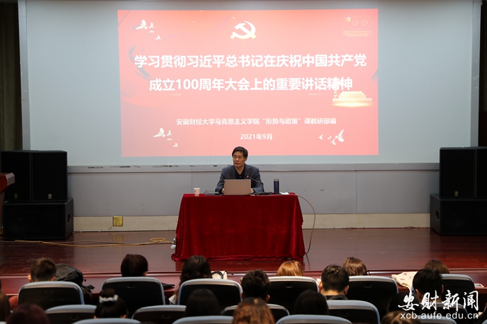 10月16至17日,由学校领导、各学院党委书记、马克思主义学院教师等参与授课的“学习贯彻习近平总书记在庆祝中国共产党成立100周年大会上的重要讲话精神”专题宣讲会暨形势与政策课集中授课会开讲。本次专题宣讲会共举办41场,近万名大学生聆听了报告。