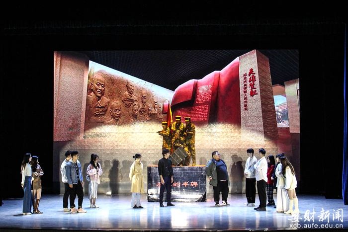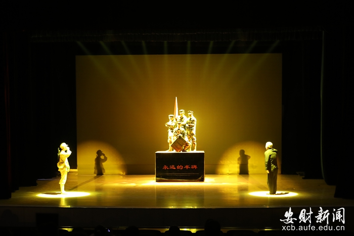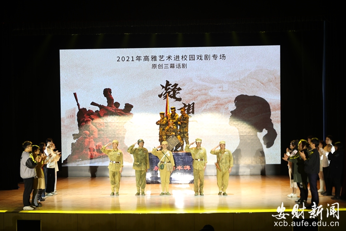 10月20日,由安徽省教育厅、安徽大学主办,安徽大学艺术学院、安徽大学公共艺术教育中心联合承办的2021年高雅艺术进校园活动走进安财校园,安徽大学艺术学院师生倾情演绎的原创话剧《凝望》在我校龙湖东校区艺术楼报告厅精彩上演。校党委常委、副校长程刚和学校师生代表共同观看演出。