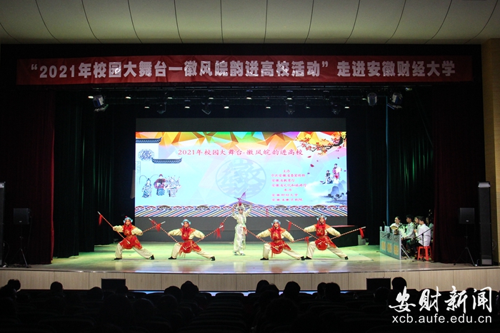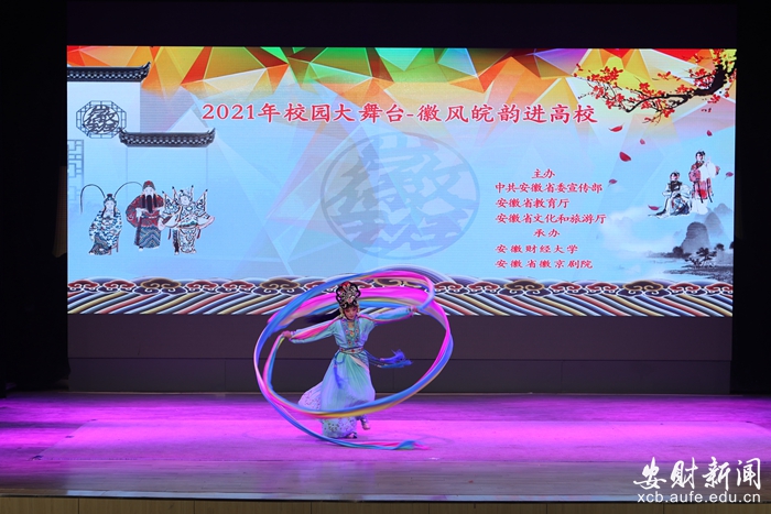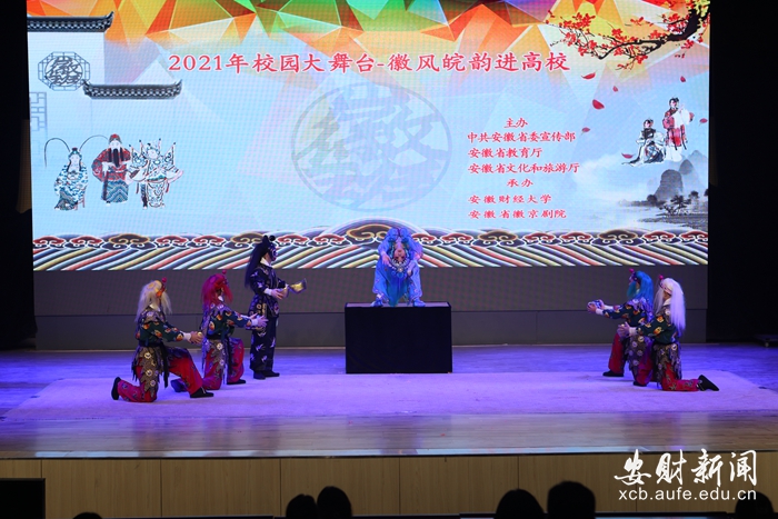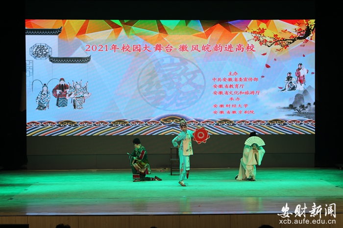 10月27日,由中共安徽省委宣传部、安徽省教育厅、安徽省文化和旅游厅共同主办,安徽省徽京剧院共同承办的“校园大舞台——徽风皖韵进高校”活动走进安财校园,安徽省徽京剧院艺术家倾情演绎的徽京折子戏在我校龙湖东校区艺术楼报告厅精彩上演,学校师生代表共同观看演出。