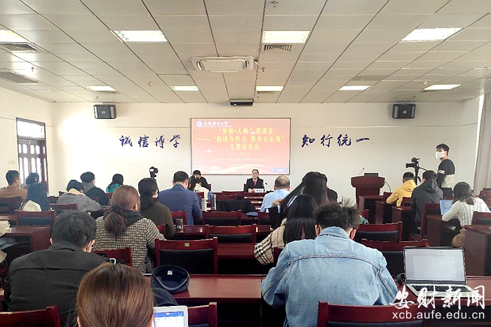 为更好地继承和发扬伟大建党精神,发挥优秀共产党员先锋模范作用,11月10日下午,“英模•大师”进课堂——“线路有终点 服务无止境”主题报告会在学校龙湖东校区图书馆八楼举办。“全国五一劳动奖章”获得者,蚌埠市公交集团107路苗苗路线驾驶员杨苗苗为师生作主题报告。我校师生代表参加此次活动。马克思主义学院党总支书记、院长张斌主持报告会,并为杨苗苗颁发“大学生思想政治理论课社会实践指导老师”聘任证书。
