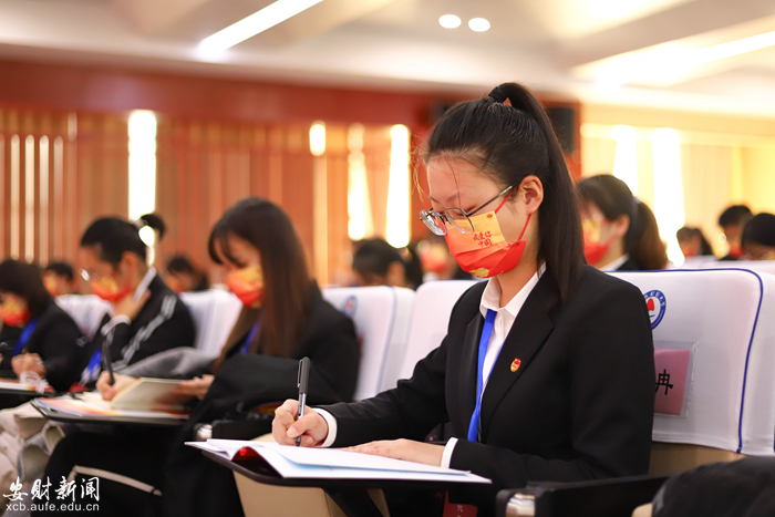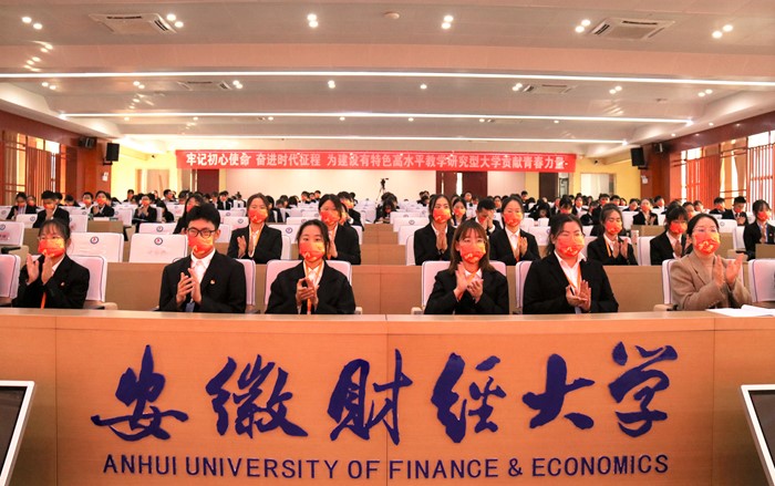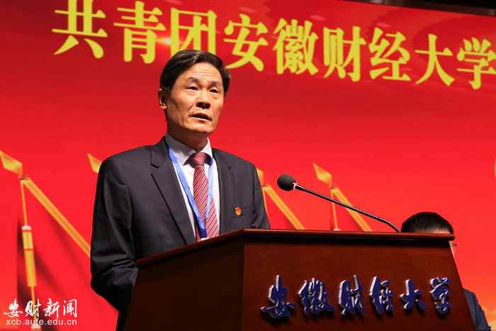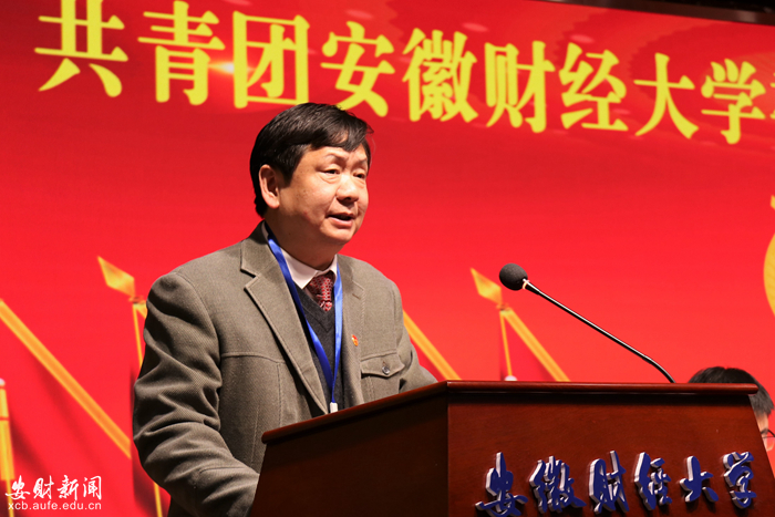 胡靖在讲话中指出,学校共青团具有基础性、战略性、源头性的地位,高校更是共青团组织的重要工作领域。他充分肯定了近年来安徽财经大学团组织取得的显著成绩,希望学校各级团学组织要坚持立德树人,用伟大思想引领青年,准确把握做好思想引领工作的核心要求,以深化党史教育为主线,以建党100周年等重要时间节点为契机,不断深化社会主义核心价值观教育的内涵;要坚持服务宗旨,用担当作为成就青年,主动适应新时代青年的新变化、新特点,切实提升团学组织的引领力、凝聚力、服务力和大局贡献度,把竭诚服务青年作为一切工作的出发点和落脚点,不断提高青年学生满意度和获得感;要坚持深化改革,用组织形象赢得青年,推动全面从严治团、加强团员青年日常教育管理、强化团学组织政治锻造、紧盯重点改革项目、加强学生组织自身建设,着力推动团学组织改革再攻坚、建设质量再提高、工作机制再优化。胡靖希望广大团员青年牢记习近平总书记的殷殷嘱托和谆谆教诲,始终坚定理想信念,赓续红色血脉,永葆初心使命;希望学校各级团组织以本次大会为新的起点,不忘初心跟党走,青春建功新时代,教育引导广大青年把青春奋斗融入党和人民的伟大事业中,为新阶段现代化美好安徽建设注入新生力量,汇聚起实现中华民族伟大复兴的磅礴伟力。