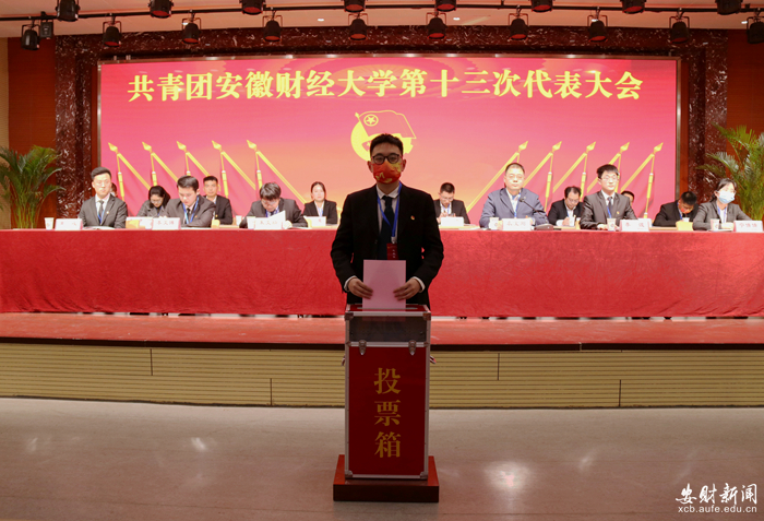 开幕式上,韩见代表团蚌埠市委,周静代表兄弟院校共青团组织致辞。大会副秘书长、校团委副书记袁宝刚致开幕词。大会听取、审议并通过了校团委书记杜斌代表学校第十二届团委作的题为《牢记初心使命,奋进时代征程,为建设有特色高水平教学研究型大学贡献青春力量》的工作报告。大会选举产生了第十三届团委委员。闭幕式后,共青团安徽财经大学第十三届委员会召开了第一次会议,选举产生了第十三届团委常委、书记、副书记。