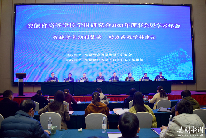 12月4日,由安徽省高等学校学报研究会主办、安徽财经大学承办的安徽省高等学校学报研究会2021年理事会议暨学术年会在我校召开。校党委常委、副校长冯德连出席开幕式,省内高校学报专家学者参加会议。开幕式由科研处处长、《财贸研究》常务副主编、安徽省高等学校学报研究会副理事长方鸣主持。