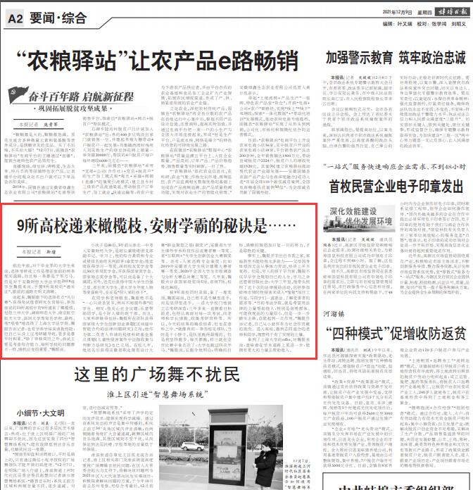 12月9日,蚌埠日报报道我校在校生优秀事迹。