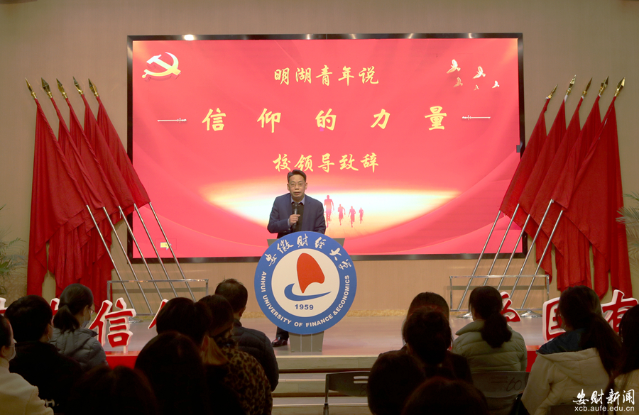 马克思主义学院副教授、安徽省五一劳动奖章获得者、安徽省高校优秀共产党员王程博士与青年学子们现场分享对信仰的认识。他从历史、时代和社会发展三个角度,层层解析信仰的丰富内涵:真正的信仰绝不是停留在口头上的,而是要真正落实到具体行动中;要时刻关注中国社会发展现状,把个人发展融入国家发展;要坚持用马克思主义指导自己认识世界和改造世界的行为;要坚持把人民利益放在首位。