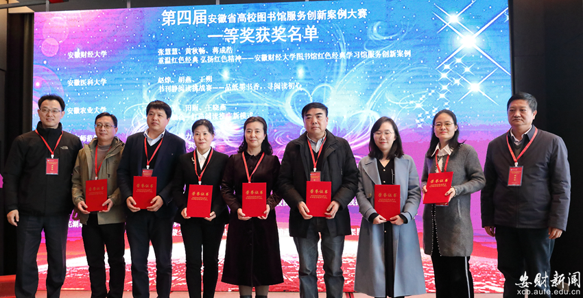 12月17日,安徽省高校图书馆第四届服务创新案例大赛获奖名单揭晓。我校图书与信息中心(图书馆)设计的创新案例《重温红色经典 弘扬红色精神——安徽财经大学图书馆红色经典学习馆服务创新案例》和《依托“安・图・生”品牌建设,开创阅读推广新格局》荣获一等奖。