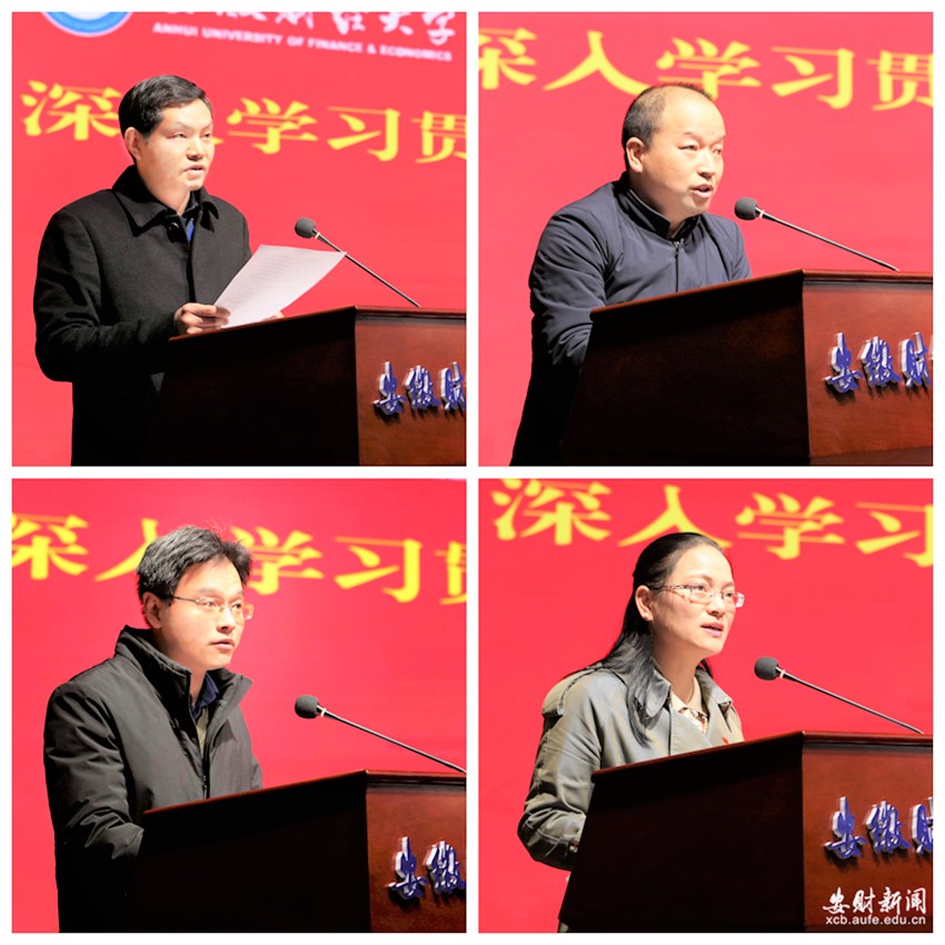 丁忠明在会上作了题为《深入学习贯彻党的十九届六中全会精神 全面推进有特色高水平大学建设进程》动员讲话。他指出,党的十九届六中全会是一次定位高远、事关全局、意义重大的会议,全会审议通过的《中共中央关于党的百年奋斗重大成就和历史经验的决议》是继习近平总书记“七一”重要讲话之后又一篇指引我们继往开来、努力奋进的纲领性文献,对深刻总结党的百年奋斗历史、伟大成就和宝贵经验,继续推进新时代党的建设新的伟大工程,向着实现第二个百年奋斗目标迈进具有里程碑意义。他要求全体参会人员和广大党员干部要提高政治站位,以严实作风、优良学风确保学习取得实效,真正做到在理论武装上有新进步、在担当精神上有新提升、在学以致用上有新收获,用全会精神更好地统一思想、统一意志、统一步调、统一行动,坚定信心、凝心聚力,努力把学习成效转化为推动学校高质量发展的实际行动。要结合学校实际,把学习成果融入“我为师生办实事”实践活动,把初心使命作为检验学习成效的“试金石”,要想到师生心头、干到师生点头,办好师生实事。要持续深入开展专题学习,把六中全会精神的学习成果转化为推动学校发展改革的强大动力,全面落实立德树人根本任务,全面推进“安财新经管”发展战略,全面推进“三全育人”综合改革,全面提高人才培养质量,全力建设有特色高水平教学研究型大学。