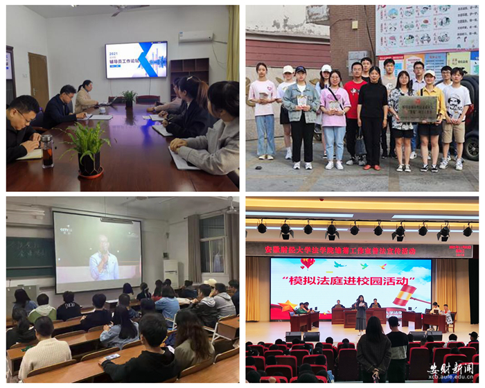 (二)统筹五大讲堂,不断坚定师生的理想信念。学院党委以党史宣讲为重要抓手,创新宣讲模式,统筹“初心讲堂”“朋辈讲堂”“网络讲堂”“社区讲堂”“萌芽讲堂”等五大讲堂,打造具有法学学科特点的宣讲品牌,以讲促学、以讲增信,进一步坚定“四个自信”。初心讲堂讲初心。学院党政领导率先“讲”起来、“思”起来、“动”起来、“做”起来,以理论滋养初心、以理论引领使命。学院党委书记李如林分别以“七一”重要讲话、六中全会精神为专题讲党的初心使命;院长张卫彬结合师德专题教育,定期开展“师德师风”专题党课;学院各党委委员和党支部书记围绕学习党史学习教育,分享学习体会、心路历程和思想认识。在此基础上引导党员“思”起来,营造“人人学初心、人人讲初心”的浓厚氛围,全面激发普通党员“主人翁”精神,“以讲促学、以讲促思”。朋辈讲堂讲奋进。以朋辈讲堂为依托,充分发挥优秀学生党员的模范带头作用,通过朋辈党员的影响和感召,进一步激发了广大学生的学习热情。一是充分利用各班级主题党日、团日和班会活动,12名学生党史宣讲员对学院全体班级进行全覆盖的形式,深入宣讲党史精神、长征精神、西柏坡精神、党的英模人物和优秀校友魏晶晶故事,进一步引导全体学生深入认识理解中国共产党在酝酿、诞生、壮大以及带领中国人民走向自我解放的历史逻辑;二是学院在青马班、党课和团课学习过程中均开展了朋辈讲堂,鼓励同学们学习身边的榜样,进一步促进学生之间的交流与分享。网络讲堂讲情怀。利用学院官网、“助苗人”网络思政平台等新媒体,用学生喜闻乐见的方式,及时推送党史学习内容,引导学生做到知史爱党、知史爱国。学院先后组织优秀教师参与了学校“百名师生讲百年党史”活动,通过录制、播放党课视频,进一步发挥网络的便捷性和有效性;以支部为单位开展网络党课学习,分四次开展“同上一堂思政大课”直播观看活动,并引发热烈反响。社区讲堂讲实际。发挥学生公寓党员工作站、“助苗人”团支部和青年志愿者协会等平台自我管理服务的作用,深入社区开展社区讲堂,学院共组织志愿者深入社区5次,在开展慰问困难老党员和宪法、民法典普法的基础上,深入开展社区党史宣讲活动,党员志愿者紧扣党史主题,声情并茂地讲述了中国共产党百年伟大奋斗历程。萌芽讲堂讲故事。组织青年志愿者协会与蚌埠六中分别以“远离毒品”“提防诈骗” “预防网瘾”和“减少校园欺凌”为主题,以班级为单位开展宣讲;胡茂杰博士为杨庙小学六年级师生们作“关护未成年人健康成长-聚焦新修订的未成年人保护法”的宣讲报告;组织“雏菊”项目工作室团队学生党员通过讲述刘胡兰英勇就义等动情故事,帮助学生了解党史,切实做到让红色基因、革命薪火代代传承。