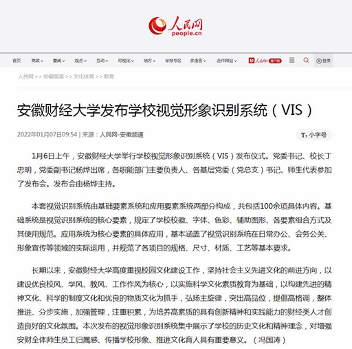 近日,我校正式发布视觉形象识别系统(VIS)。人民网、中国网、凤凰网、安徽教育网等多家媒体对学校正式发布的视觉形象识别系统(VIS)进行了报道。