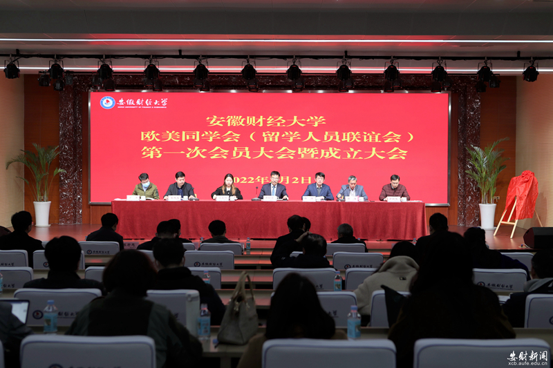3月2日下午,安徽财经大学欧美同学会(留学人员联谊会)第一次会员大会暨成立大会在求真楼报告厅隆重举行。省欧美同学会秘书长许松亭、省委教育工委组干处二级主任科员谈嘉吟到会祝贺,校党委副书记杨烨出席会议并讲话。欧美同学会筹备组成员单位负责人,各二级党组织党委书记,各民主党派、知联会、侨联代表和全体会员参加会议。