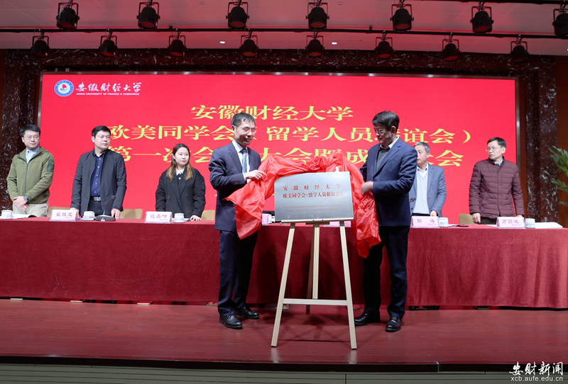 杨烨、许松亭为安徽财经大学欧美同学会(留学人员联谊会)揭牌。