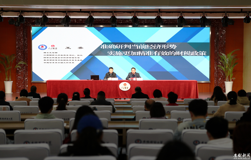 王乔教授立足我国新发展阶段经济发展新形势,围绕财政政策如何精准有效实施展开学理辨析与路径探析,报告高屋建瓴、深入浅出,富有思想启迪,不仅为师生进行科学研究拓宽了思路,也为政府实施财政政策提供了有益借鉴。