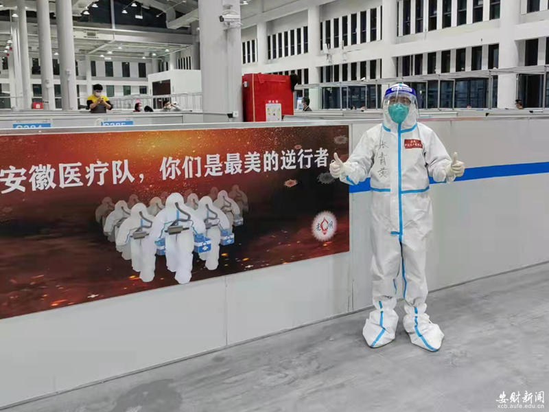 近期,上海疫情防控形势严峻,我校2021级MBA班学生张青黄不负担当,逆行出征,随安徽省援沪医疗队驰援上海,在花博园复兴馆方舱医院从事救治工作。