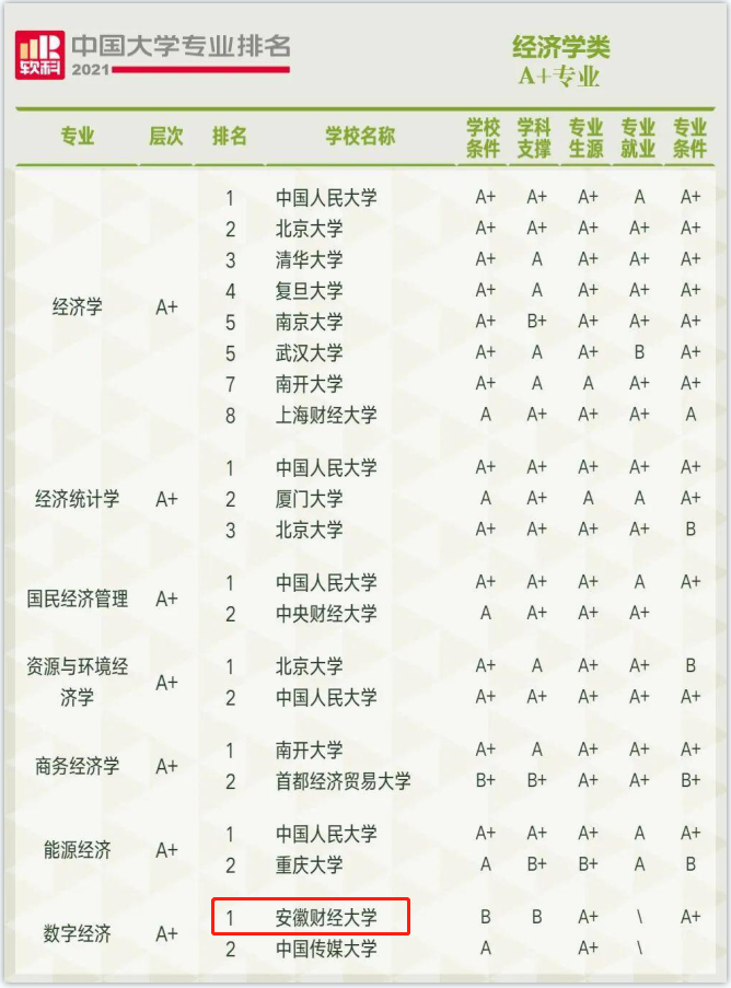 2019年,我校数字经济专业结合学校“新经管”战略实施申报开设,是适应我国数字经济快速发展设置的一门新专业,是集经济学、数据科学和现代信息技术于一体的综合性、交叉性专业,致力于培养能够运用互联网、大数据、云计算等现代信息技术和数量分析方法,发现、分析与解决现实经济问题的复合型应用型经济学人才。我校是全国第二批、安徽省首批开设数字经济专业的院校,自2019年获批以来,通过不断探索人才培养模式,数字经济专业办学特色不断显现,办学成效日益凸显。在全球领先的高等教育评价机构软科首次发布的2021“软科中国大学专业排名”中,我校数字经济专业排名A+等级。