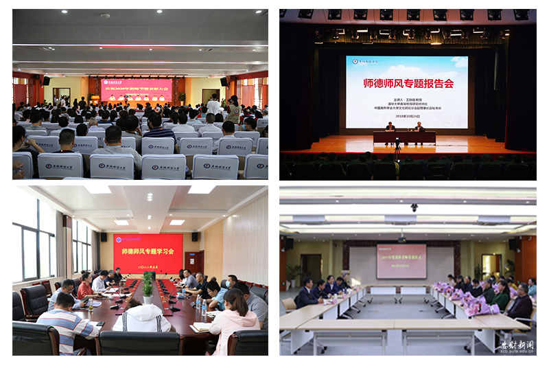 坚持示范带动,培育师德文化。利用教师节、新教师入职等节点,开展师德榜样评选,表彰优秀教师,激励广大教师争做为学、为事、为人的典范;充分利用校园网、校报、宣传展板、官方微博和微信公众号等平台,构建师德师风宣传矩阵,加大对先进典型的宣传力度,传递师德正能量;举办退休教职工荣退仪式,弘扬高尚师德,营造尊师重教的浓厚氛围。2018年以来,学校新增“全国优秀教师”1人、“安徽省五一劳动奖章”获得者2人、“安徽最美教师”1人、安徽省“十大法治人物”1人、“全省优秀教师”1名、安徽省教科文卫体系统“师德先进个人”3人。