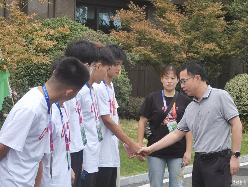 比赛期间,校党委副书记、常务副校长朱红军冒着酷暑亲临现场,看望慰问田径代表队成员,为参赛师生鼓劲加油。朱红军详细了解我校参赛运动员的比赛情况,对运动健儿和指导老师赛前扎实的准备工作给予充分肯定,对大家克服高温酷暑,敢于拼搏、挑战自我的精神表示高度赞扬。他强调,运动员要严格遵守赛会制度,按照闭环管理要求,自觉执行疫情防控、反兴奋剂等各项规定。他要求,随队工作人员要加强安全意识,强化高温下学生的身体健康监测和应急防范措施,做好安全保障、饮食卫生等各项工作。他希望,全体运动健儿在比赛中团结向上、顽强拼搏,比出青春活力,赛出高尚风格,积极展现安财学子良好精神风貌。
