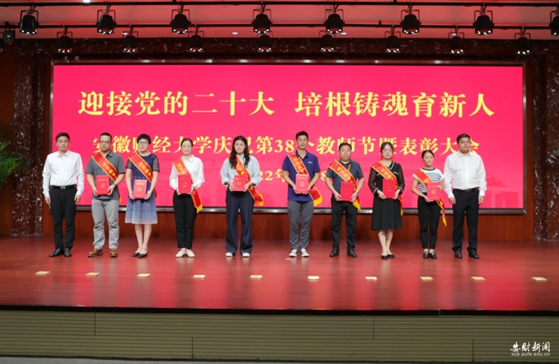 虞宝桃发表热情洋溢的讲话。他代表学校向全体教职工致以节日问候,向受表彰的教职工表示衷心祝贺,向所有爱岗敬业、潜心学问、精心育人的教职工致以崇高敬意。他充分肯定学校全体教职工多年来的奋斗与付出,尤其是常态化疫情防控期间不畏辛苦,始终坚守教学、科研和校园建设一线,展现出安财教职工良好的精神风貌和责任担当。虞宝桃指出,当前学校正在深入推进“安财新经管”发展战略,大力实施“走出去、建平台、上水平”发展举措,持续推动内涵式发展。全校教职工要坚定信心,赓续弘扬学校为党育人为国育才的光荣历史与传统。持续加大人才引进力度,重视师资队伍建设,努力建设特色鲜明的多科性财经大学;要牢记使命,做学生成长成才的大先生和引路人。每一位教师都要把涵养师德师风和潜心教书育人统一起来,以德立身、以德立学、以德施教;要笃行不怠,着力营造崇尚学术尊重人才的良好氛围与环境。要坚持党对人才工作的全面领导,创建识才爱才敬才用才环境,开创学校人才工作新局面。虞宝桃勉励全体师生团结一心、众志成城,主动投身学校高质量发展进程,埋头苦干、勇毅前行,以实际行动和优异成绩迎接党的二十大胜利召开。