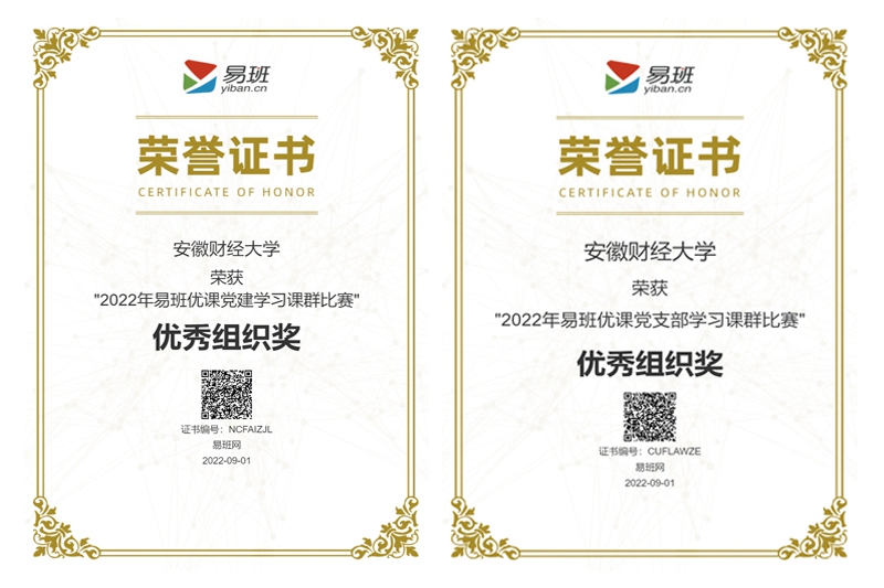 近日,教育部易班发展中心公布了“2022年易班优课党建学习课群比赛” 和“2022年易班优课党支部学习课群比赛” 活动结果,我校在两项赛事中均荣获“优秀组织奖”,共计24人次荣获“优秀指导老师”称号。