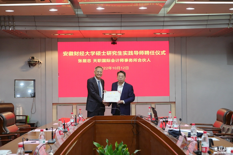 会后,举行了安徽财经大学硕士研究生实践导师聘任仪式,聘任张居忠为我校硕士研究生实践导师。