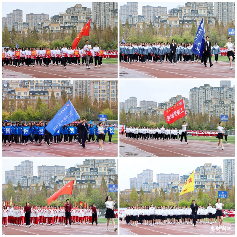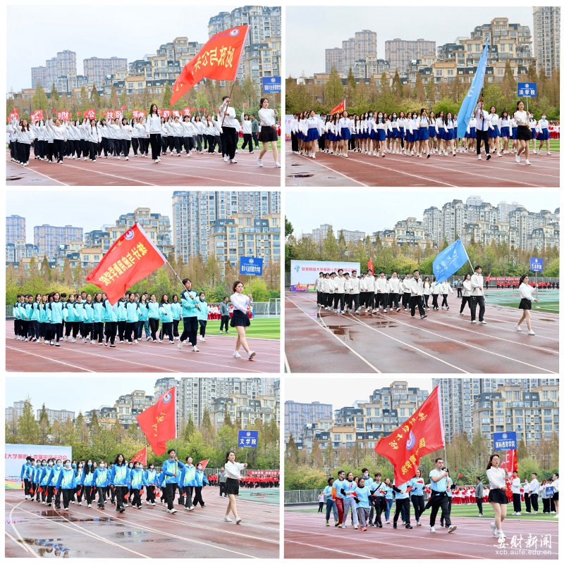 开幕式上,国旗护卫队护着国旗、校旗,迈着矫健的步伐,庄严入场。在一面面代表着青春风采和生命涌动的旗帜下,各学院代表队、教职工代表队等依次步入操场,他们稳健的步伐,坚毅的脸庞无一不充满着自信与活力,展现出安财人积极向上的精神风貌。