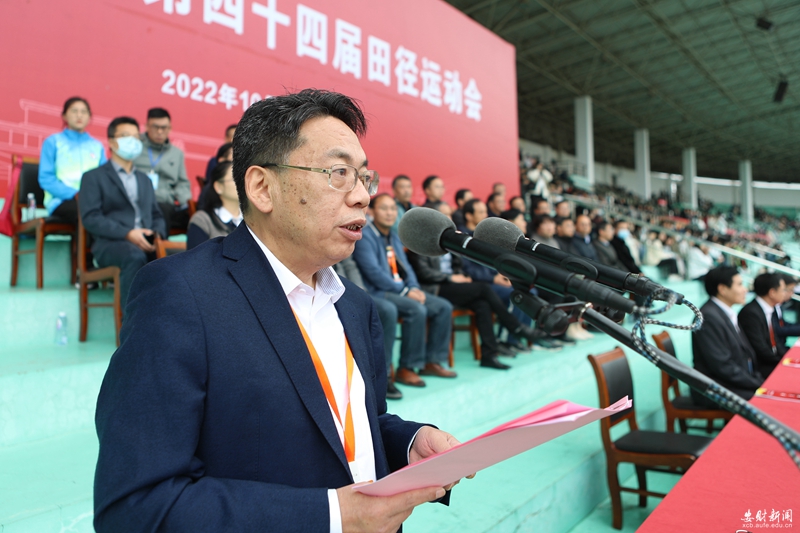 朱红军在致辞中表示,高校体育教育工作作为一项基础性工程,是学校牢记立德树人初心,践行为党育人、为国育才使命的重要抓手,也是学校活力、精神、状态的重要体现。一直以来,学校将体育教育作为落实立德树人根本任务的重要环节,充分发挥体育教育功能,持续深化体育教学改革,重塑体育教育理念为学生全面发展赋能,重建体育教育体系实现“课堂+实践+联赛”一体化,重构体育价值推动养成文明习惯和健康行为,不断强化体与育的融合,体育教育工作取得新进展,学生体质测试成绩显著提升,体育俱乐部改革成效日益显现,以赛促学、赛体融合成绩突出。他强调,健康的体魄和良好的精神状态是可持续发展的重要前提和基础。学校将始终秉持“健康第一”的教育理念,持续强化体育教育工作,不断提升体育课程的思政化水平、体育实践的信息化水平、体育联赛的竞技化水平。以学生的兴趣为导向,加大体育俱乐部建设力度,更好地促进同学们全面、个性化发展,营造全校热爱健康、崇尚体育的良好氛围。他希望,广大老师和同学们以此次运动会为契机,不断增强责任意识、大局意识,心往一处想、劲往一处使,把“更快、更高、更强、更团结”的体育精神转化为开创学校高质量发展新格局的强大动力。