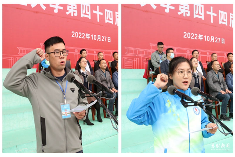 体育教学部叶伟、文学院曹佳雪分别代表裁判员和运动员宣誓。