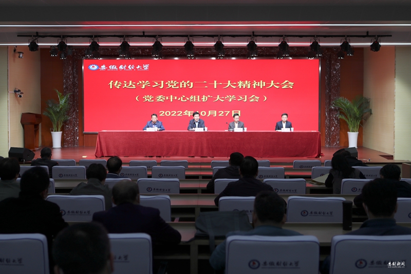 10月27日下午,学校在龙湖东校区求真楼报告厅召开传达学习党的二十大精神大会(党委中心组扩大学习会),传达学习党的二十大精神,部署安排党的二十大精神学习宣传贯彻工作。校党委书记虞宝桃,校党委副书记、常务副校长朱红军,党委常委、副校长周加来,党委常委、纪委书记、监察专员武刚出席会议,学校党委中心组成员、中层正职管理干部参加会议。朱红军主持会议。